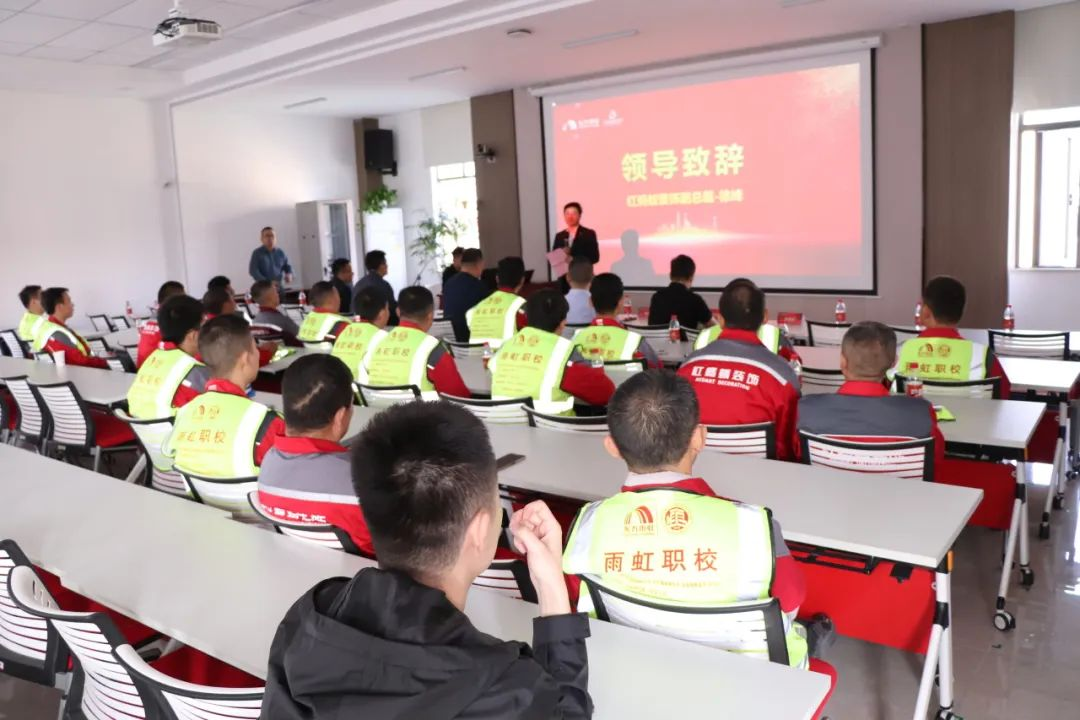 红蚂蚁装饰与东方雨虹团队针对工地交付细节,以及隐蔽工程施工过程中出现的重点难点解决方案展开了密切的交流。在理论培训与交流环节,红蚂蚁装饰产业工人们以学者的姿态投入其中,全神贯注地汲取知识,积极发问、深入讨论。在这一刻,他们超越了单一的工人身份,成为了热衷学术的倾听者以及充满活力的交流者。