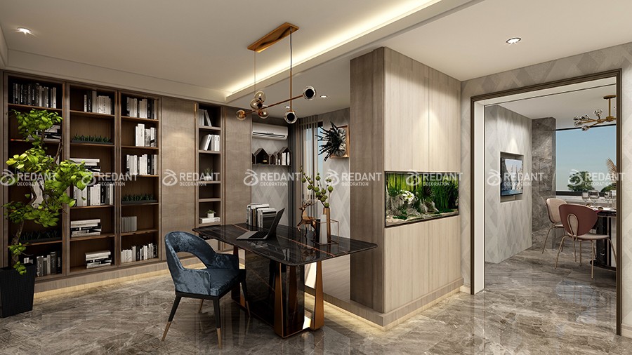 认识这么多年,汤老师知道业主工作很忙,业主在外忙碌之时,难免会有想在家中小憩、放松一会儿的想法,因此在家中规划出一块独立的办公空间,劳逸结合,让业主更好的平衡生活与工作的关系。