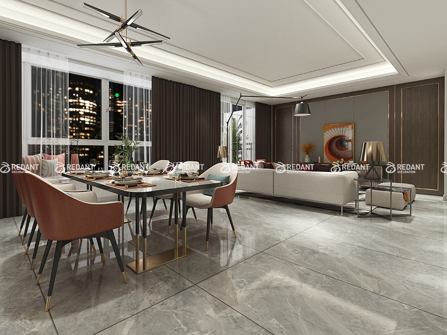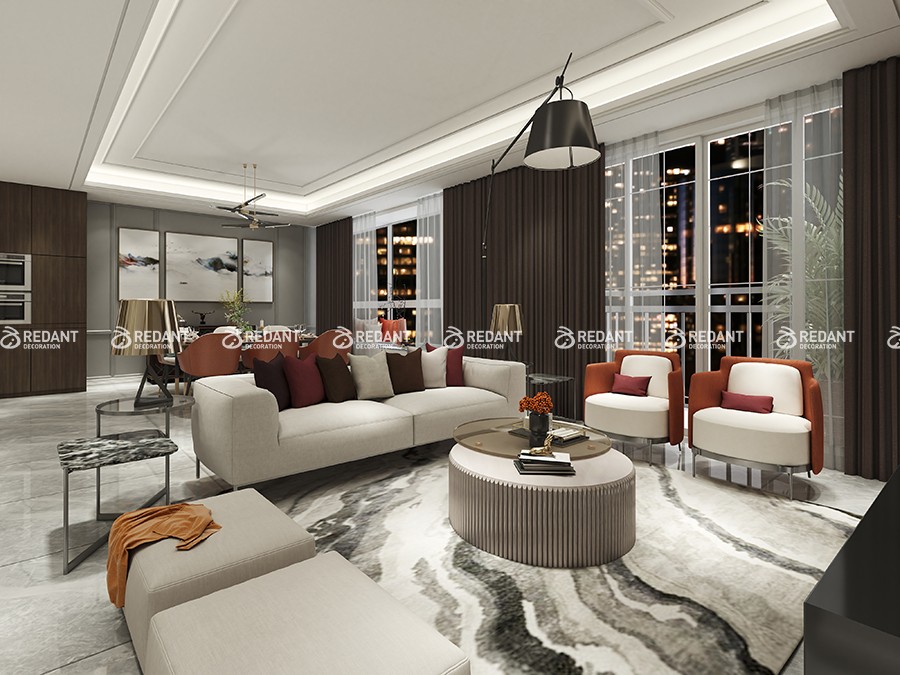 现代轻奢风格,实际上是以极致简约风格为基础,通过一些精致的软装元素来凸显质感,同时也浓缩着意想不到的功能与细节,从而彰显一种高质量高品质的生活方式。