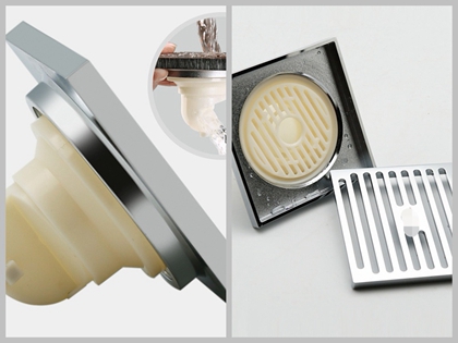 采取这个版本的解决方案,可以把隐患扼杀在摇篮里。重点怎么做呢?deng~deng~deng~~那就是挑选一款合适的地漏啦!地漏虽小,选错,麻烦可不小!特别是淋浴区排水多,建议选铅坠式地漏芯,过水量大,没水时铅坠利用重力合上挡板,密封性强,防臭防虫。面板采用长条栅格状,空隙大,下水快,材质用不锈钢耐用且性价比高。担心头发堵塞问题,选有双重防户盖板的地漏,内置拦发网,排水同时拦截杂物进入排水管,双重过滤,告别堵塞。另外多一句嘴,不管用什么类型地漏,都要预埋存水弯,防臭防虫有奇效喔!