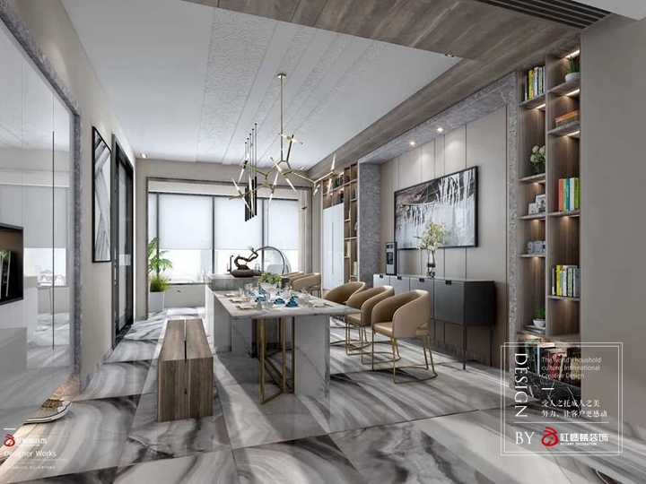 从一开始的平面布局开始,结合其特殊的空间形态,主要是围绕一个“透”字。 本身的公共空间尺度够大,设计师通过对空间的修饰,获得更强的空间感,无论是通透性还是结构的延伸性,都希望给空间加分。更多案例请关注红蚂蚁装饰官网。
