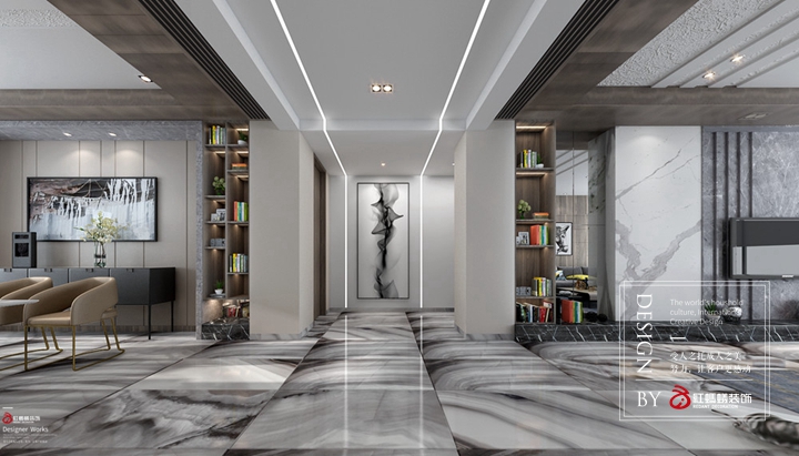 入户端景的处理相对更直接,一打开入户门便豁然开朗,无论是整体的空间氛围还是结构的美感,都在营造回家的归宿感和仪式感。